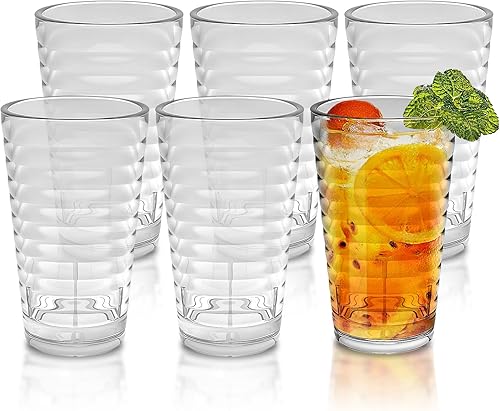 Verres à eau empilables en PC Verres à jus de fruits Set de 6 | 385 ML Gobelets réutilisables | Collection Pure | Parfaits pour la maison, les restaurants et les fêtes | Lavables au lave-vaisselle