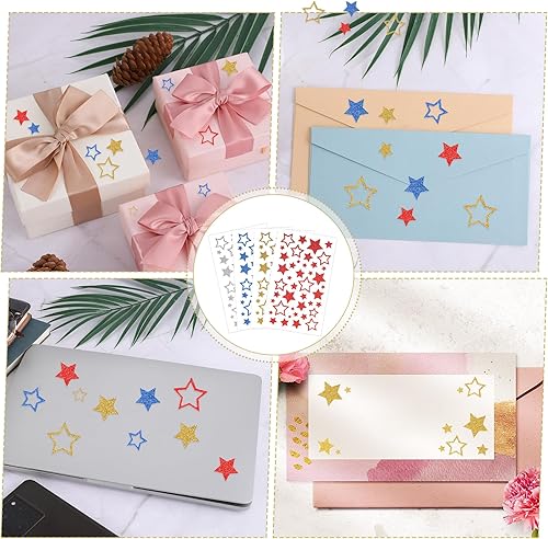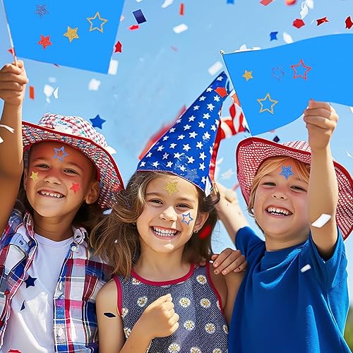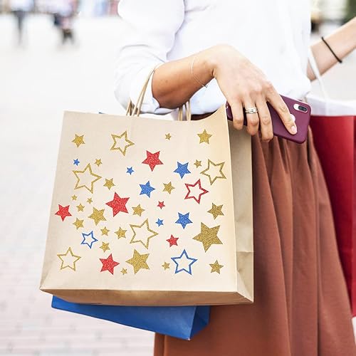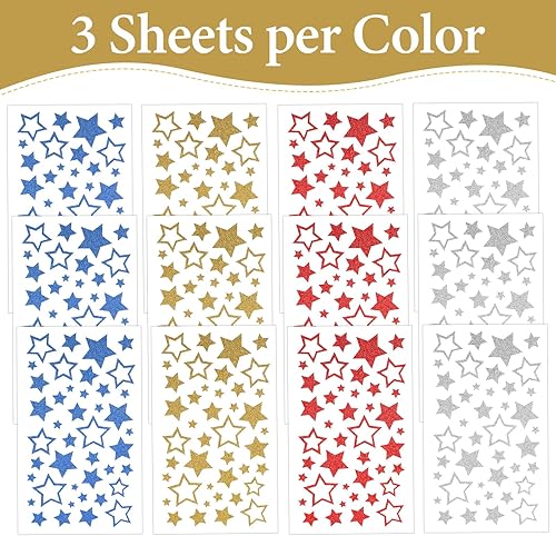 Lot de 12 feuilles d'étoiles autocollantes patriotiques à paillettes rouge, bleu, argent, rouge, blanc, bleu, autocollants patriotiques pour décoration de Noël, loisirs créatifs