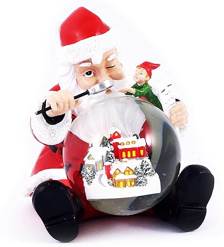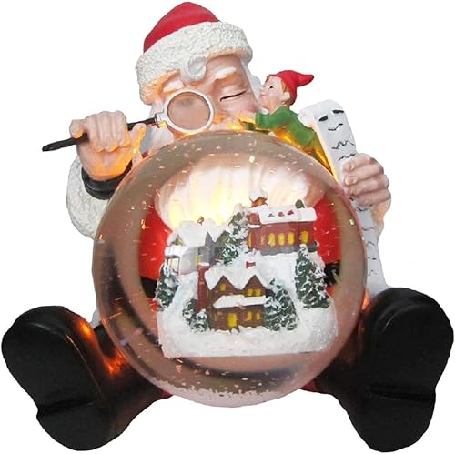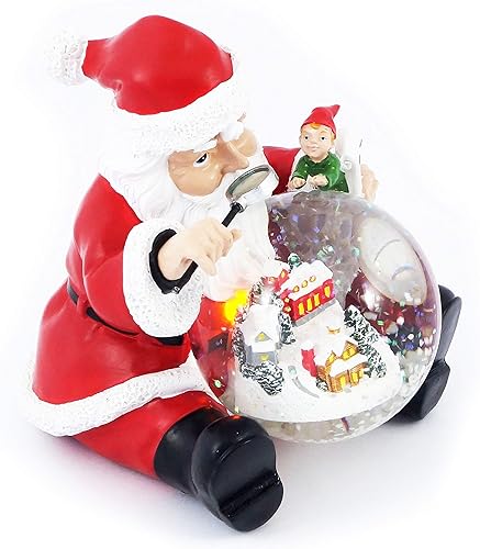 Boule à neige LED à paillettes Père Noël avec lutin et liste de souhaits