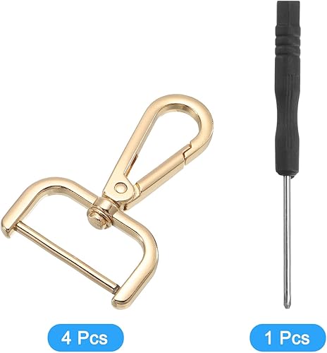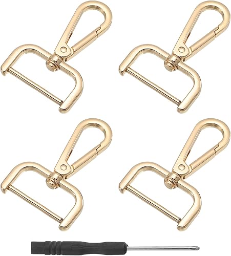 QUARKZMAN 4 Pièces Fermoirs Pivotants Crochet, 32mm (1,25 Pouce) Anneau en D Mousqueton Amovible Crochet de Fermoir à Griffe de Homard en Métal avec Tournevis pour Porte-Clés, Or