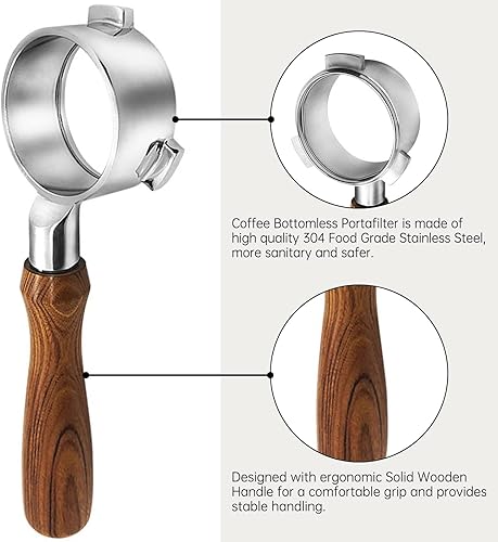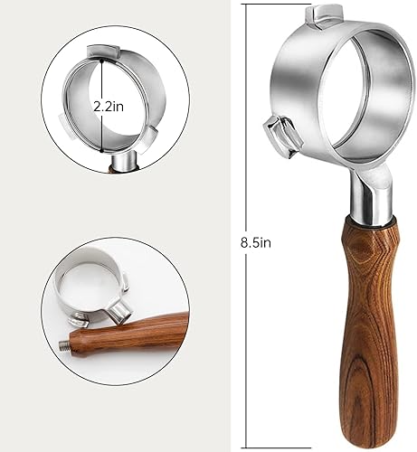 Porte-filtre sans fond 54 mm pour être utilisé avec les séries Breville/Sage Barista BES880, BES878, BES875, BES870, BES840, BES810, BES500, Barista Express-Design Amovible-Palissandre-3 Ears