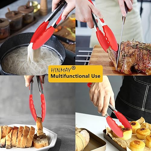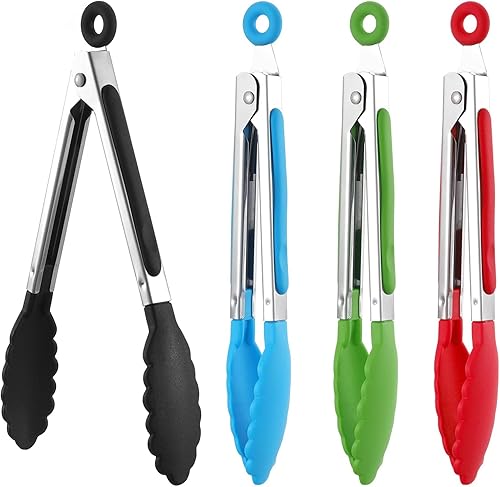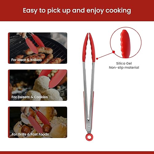 Pinces de Cuisine,4 PCS Pince Barbecue en Acier Inoxydable avec Embouts en Nylon Ustensiles de Cuisine pour Cuisiner