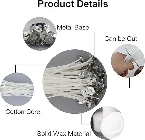 Lot de 50 mèches de bougie de 10 cm pour bougies en coton pour la fabrication de bougies, pour la fabrication de bougies, pour la fabrication de bougies, blanches