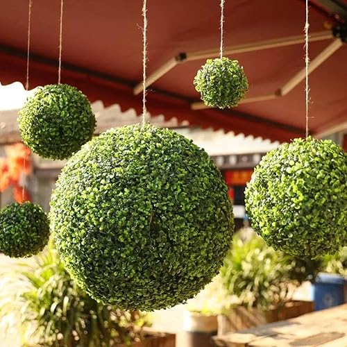 Boules topiaires artificielles vertes de 27 cm pour l'extérieur, boules de buis décoratives réalistes à suspendre