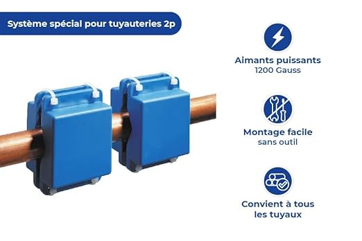 Maximex Anticalcaire magnétique, anticalcaire naturel à fixer sur les tuyaux, lot de 2