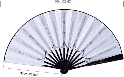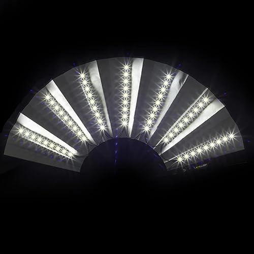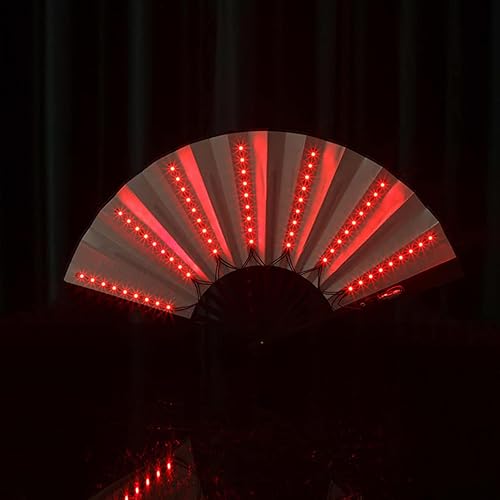 Rianpesn Ventilateur Chinois Lumineux à LED - Grand Ventilateur Pliant en Nylon - Stage Performance Show Light Up Fan Anniversaire Cadeau Mariage Night Bar Club Accessoires Fluorescents
