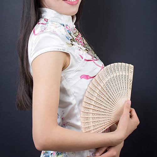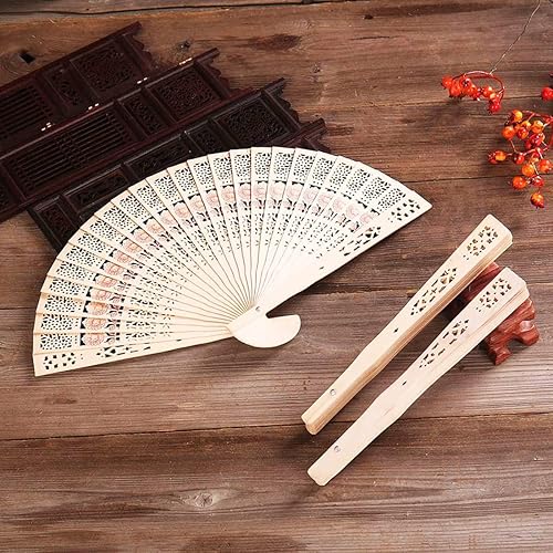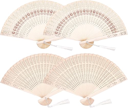Lot de 4 éventails Pliables en Bois avec Pompons, 2 Types Vintage en Bois de Santal éventail Pliable en Bois de Santal éventail Pliable en Bois de Santal pour Femme Cadeaux de Mariage fête prénatale