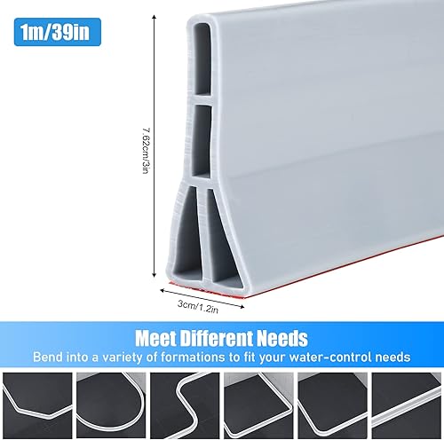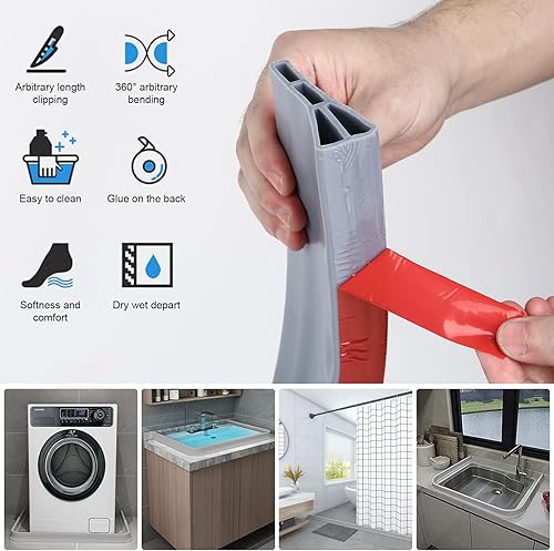 jackfru Barrière d'eau autocollante - Hauteur : 7,62 cm - Barrière d'eau - Bande de protection contre les éclaboussures - Pour sol de douche - Blanc (1,5 m x 7,62 cm)