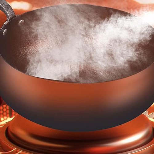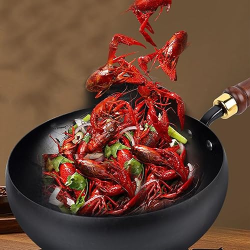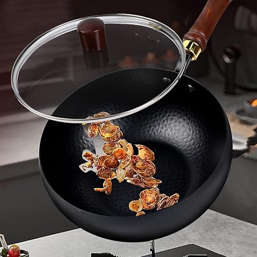 Poêle Wok Antiadhésive, Wok Ménager En Fonte Naturelle Avec Couvercle Et Poignée En Bois, Poêle Antiadhésive, Revêtement Antiadhésif Résistant À La Chaleur Pour Les Types De Plaques De Cuisson