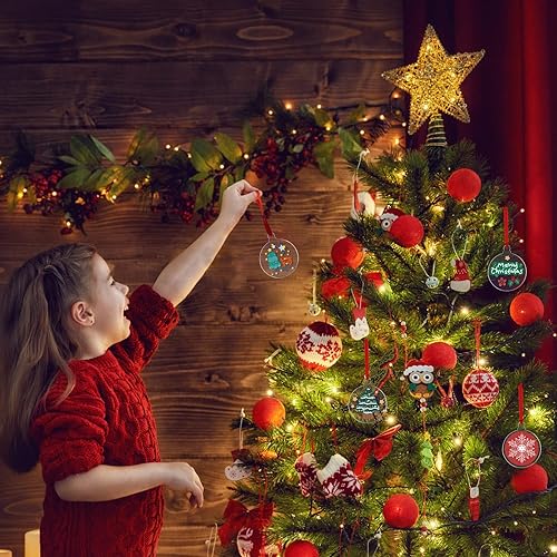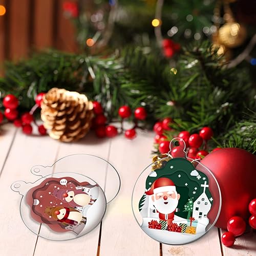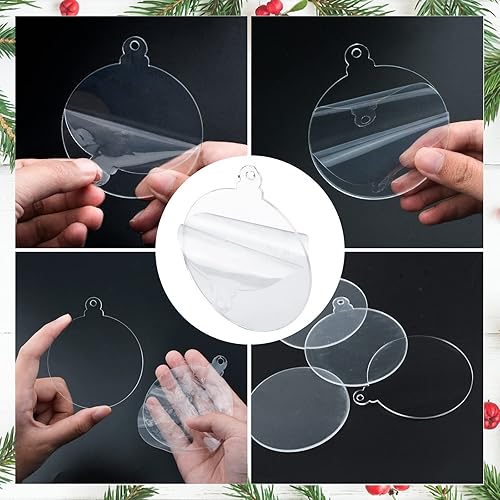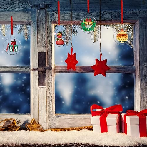 WANDIC Lot de 20 décorations de Noël Rondes en Acrylique Transparent avec Ruban Rouge - Disques Vierges pour Loisirs créatifs - Décoration de Sapin de Noël (Rond)
