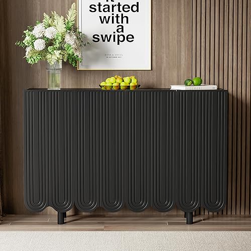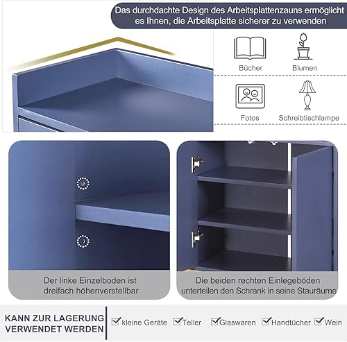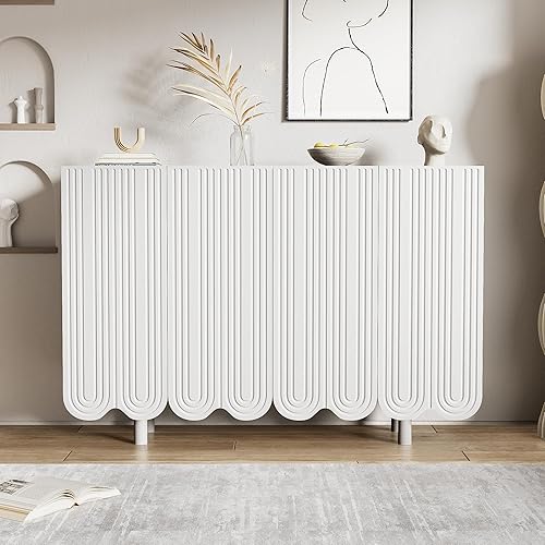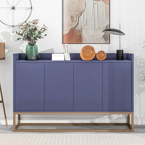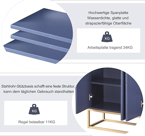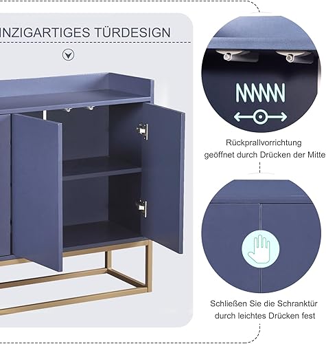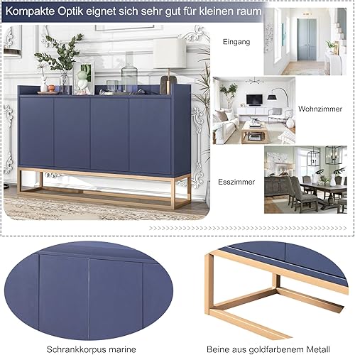 DULRLLY Buffet Bas Cuisine, Meuble de Cuisine Rangement avec 4 Portes et Étagère Réglable, Armoire Cuisine Rangement avec Pieds en Métal Doré, Buffet Cuisine Moderne, 120 x 30 x 80 cm (Blanc)