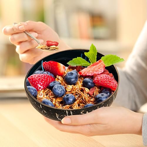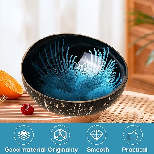2 Bols En Noix De Coco: Bol De Service & Bol À Snacks, Bol Décoratif En Noix De Coco, Idéal Comme Bol À Müsli, Bol Nature Pour La Maison (Diamètre 12–15 cm/Couleur Bleu)