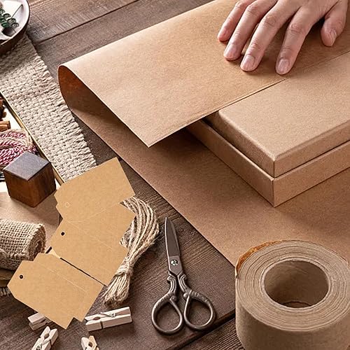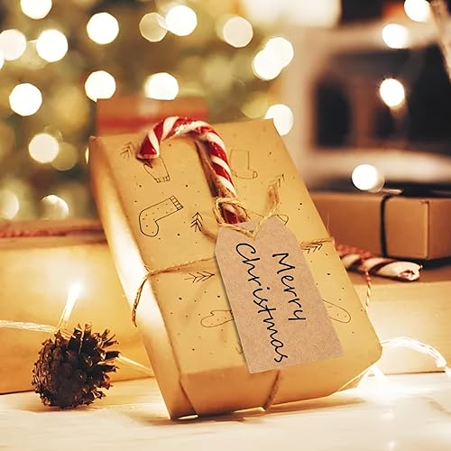 Lot de 100 étiquettes en papier kraft - 7 x 4 cm - Étiquettes en papier kraft pour fabrication à la main, mariage, Noël - Marron