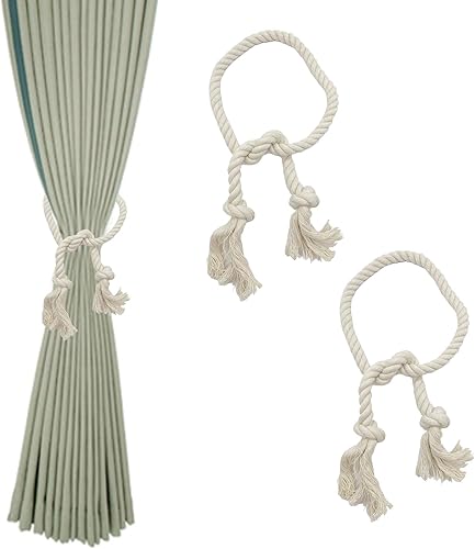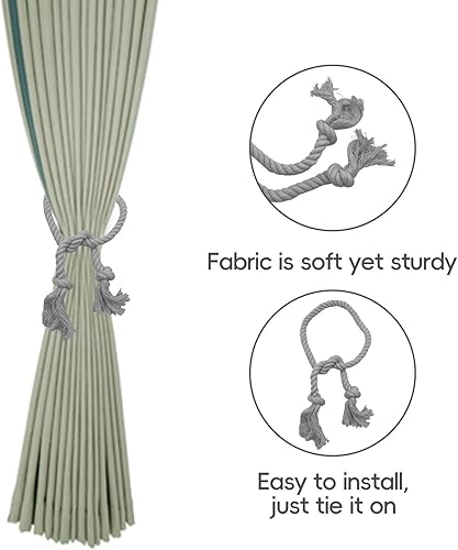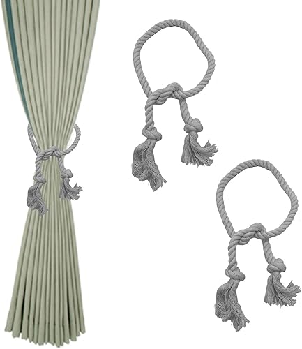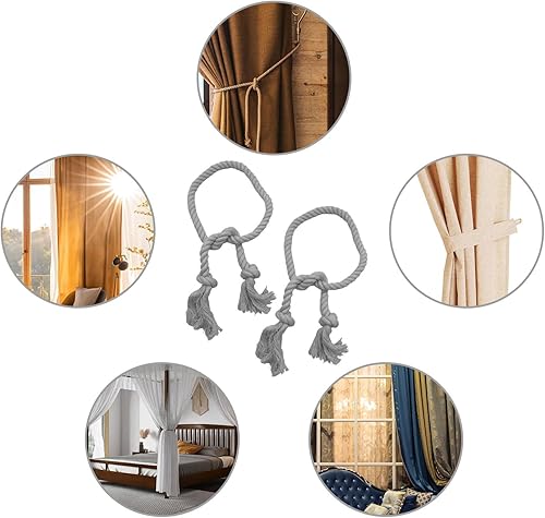 XQMMGO Lot de 2 embrasses de Rideaux, Pinces à Rideaux bohèmes, Corde en Coton, embrasses de Rideaux Faites à la Main, pour la décoration de Rideaux de Bureau, de Maison (Gris)