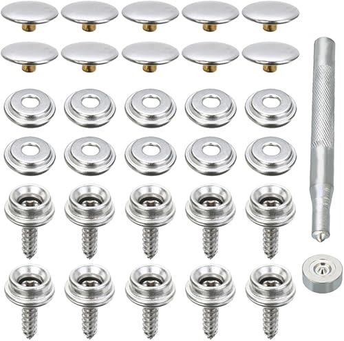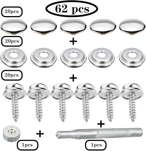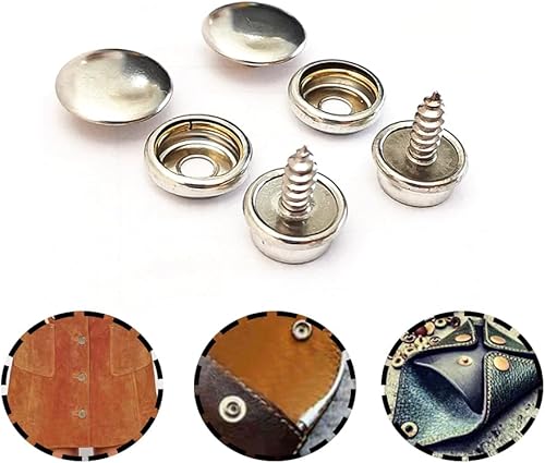 Csirnto Lot de 62 boutons-pression en métal pour vêtements - Boutons pression en métal - En acier inoxydable - Pour veste en cuir, sac à main, portefeuille - Argenté