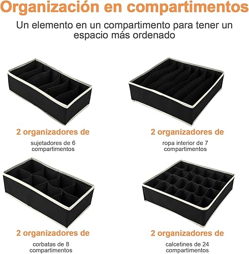 Collazoey Lot de 8 Organisateur séparateur de sous-vêtements, Organisateur sous Vetement Pliable, Convient pour Classer Les Chaussettes, Les Sous-Vêtements, Les Soutiens-Gorge, Les Cravates (Noir)