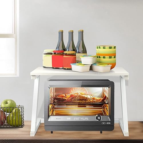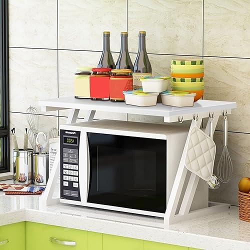 OHMG Support Extensible pour Micro-Ondes,Meuble Micro Onde avec 4 Crochets,Étagère De Rangement en Bois,Etagère pour Four à Micro-Ondes, Étagère de Cuisine Comptoir 2 Niveaux