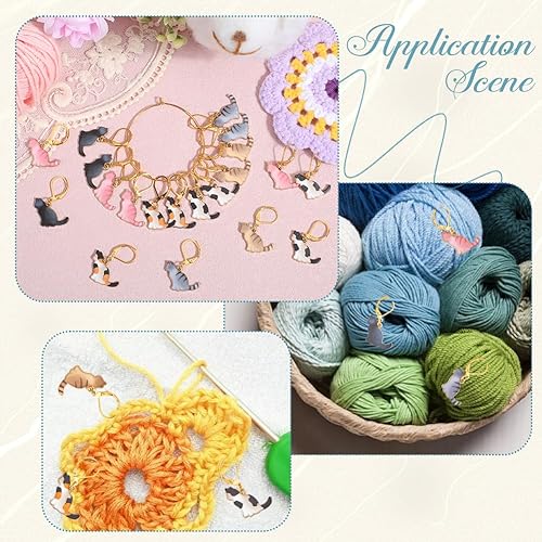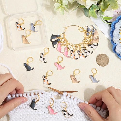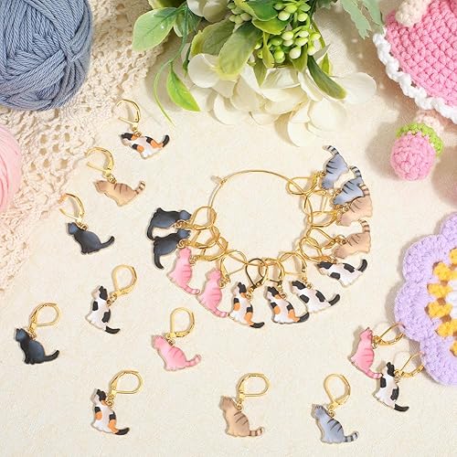SUNNYCLUE 1 boîte de 24 marqueurs de Mailles au Crochet en Forme de Chat Breloques en Alliage Émaillé Mignon Drôle Animal Clips de Verrouillage Dorés Fermoirs Breloques pour Crochet Tricot Tissage Fab