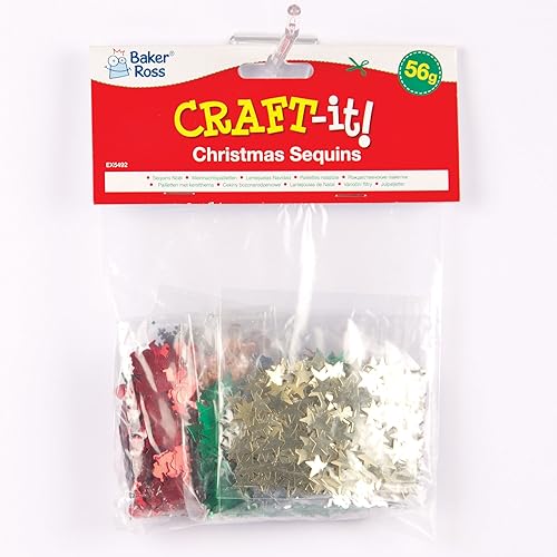 Baker Ross EX5492 Lot de paillettes de Noël – Travaux manuels et projets artistiques pour enfants, cartes, sacs de fête et décorations (56 g)