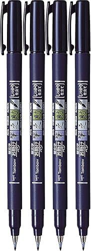 Lot de 4 stylos pinceaux Tombow Fudenosuke, pointe dure, couleur d'écriture noire