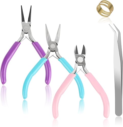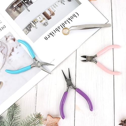 Lot de 3 Pinces à Bijoux, Pinces à Bijoux/à Becs Aiguilles, Pinces Pour La Fabrication De Bijoux, Pince à Chaîne Pinces à Bijoux DIY, Pince Ronde Et Coupe-Fil Pour Fabriquer Des Bijoux, Artisanat,Etc