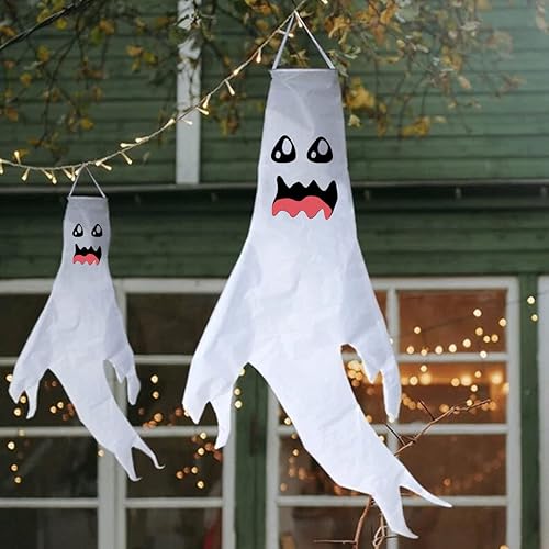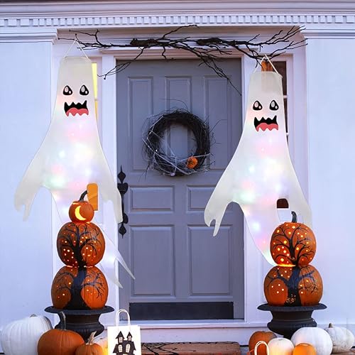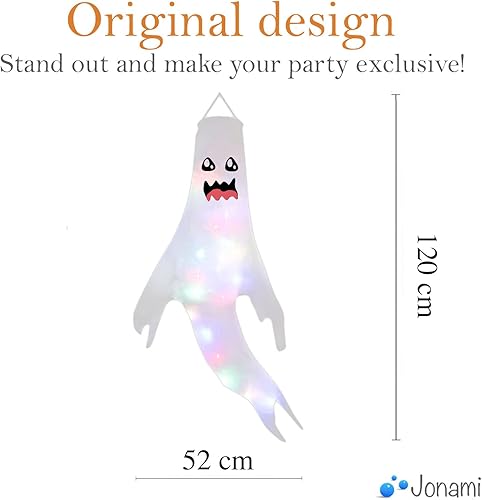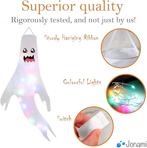 Jonami Deco Halloween Fantôme Suspendu d'halloween, Fantômes Suspendues avec Lumières LED pour la Décoration Extérieure, Accessoires de Décoration de Fête Halloween.