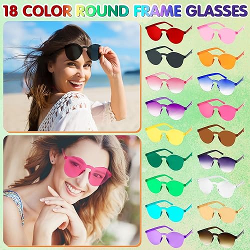 FAMKEEP 18 Paia Occhiali da Sole a Rond Senza Montatura,Hippie Lunettes Fête en Ronds pour Fête D'anniversaire,Carnaval di Occhiali da Festa,Lunettes de Soleil Rond