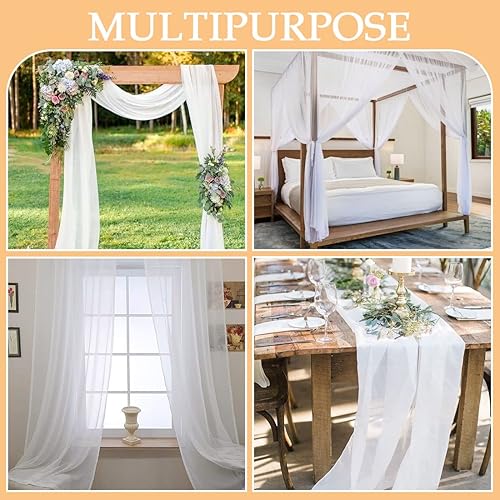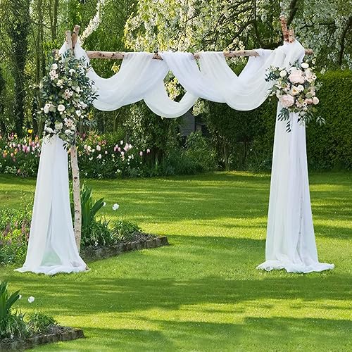 Blanc Décoration de Mariage Arche de Mariage, Cantonnière décorative à Main levée, Toile de Fond en Tulle Tissu drapé pour Salon Arche de Porte Décoration de cérémonie, 6 m x 1,5 m