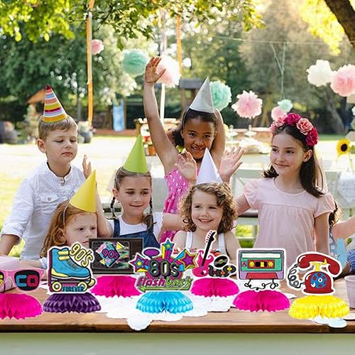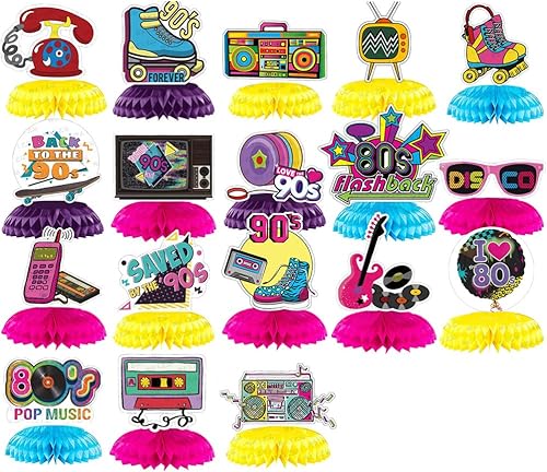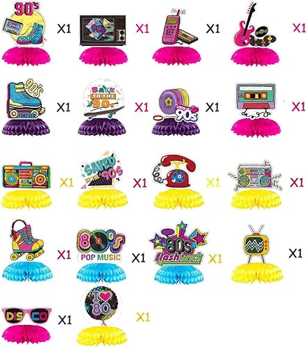Kaxich 18 Pièces 90 Décorations des Années 80, 90s Centres de Table en Nid d' Abeilles Toppers Hipper Hop Party Décor de Table Rétro des Années 1980 Favor Décorations de fête Années 1990