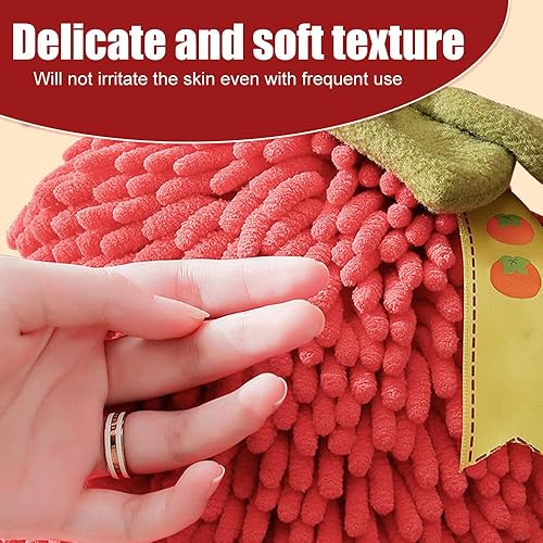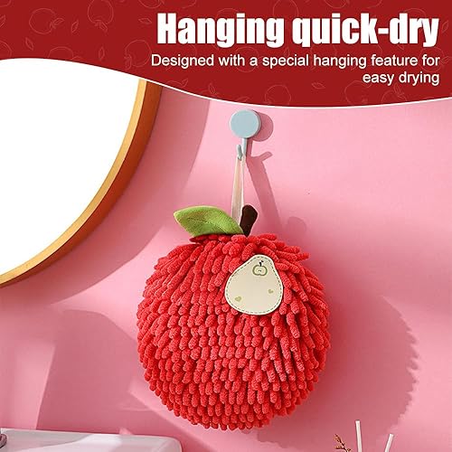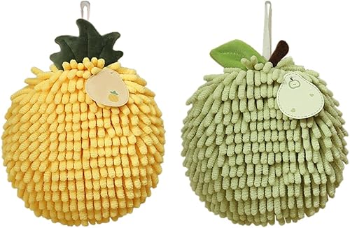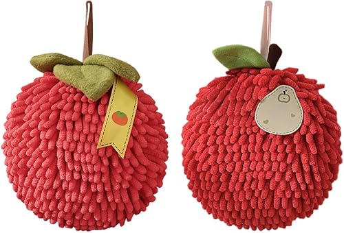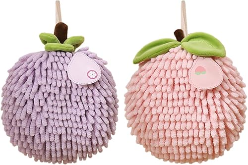 MiOYOOW Serviettes à Main Suspendue, 2 Pcs Essuie à Main à Séchage Rapide, Boule de Serviette Absorbantes en Chenille Pelucheuse pour Salle de Bain et Cuisine, Forme du Fruit