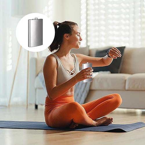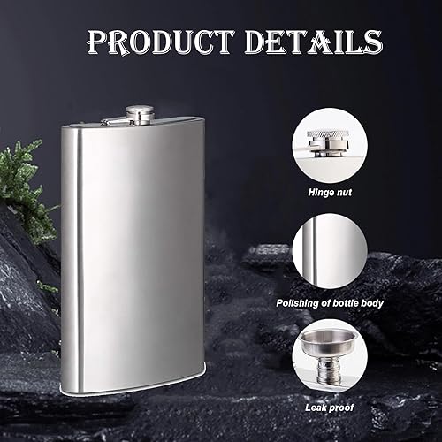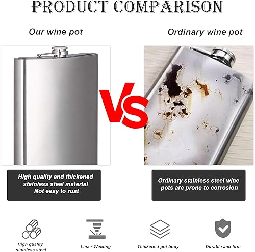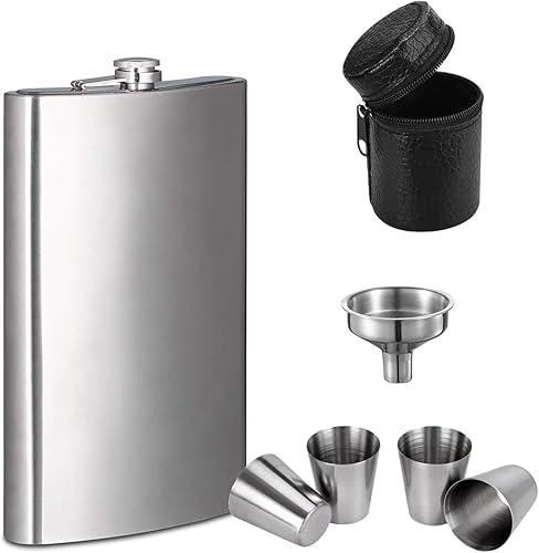 DEANKEJI Flasque a Alcool, Fiole Alcool Forme U, 12 oz Flasque Acier Inoxydable, Flasque de Poche Portable avec Entonnoir, Tasse et Porte-Verre à Vin en Cuir pour Randonnée, Voyages et Camping