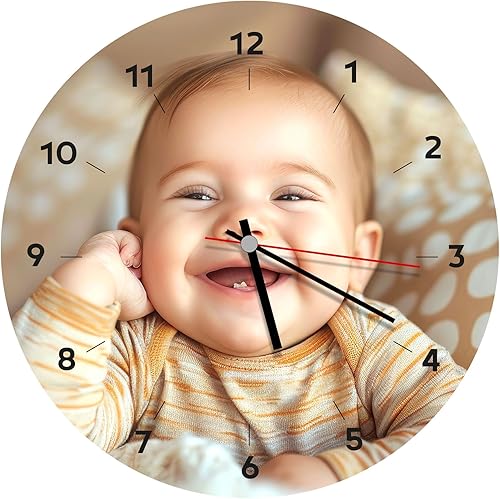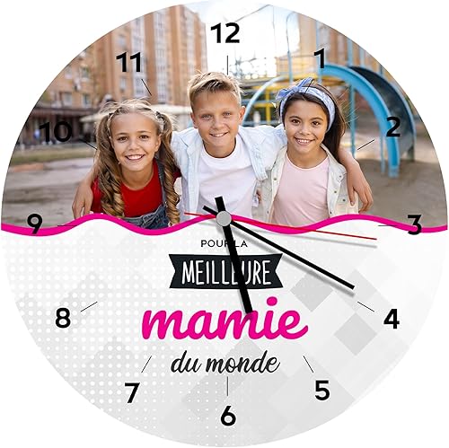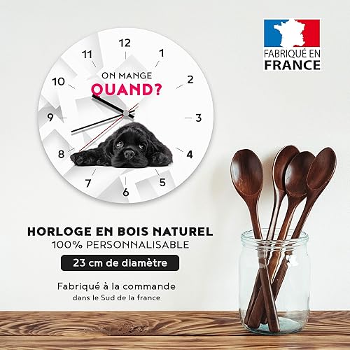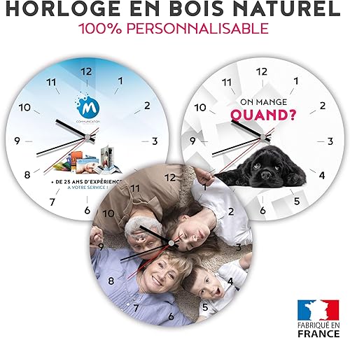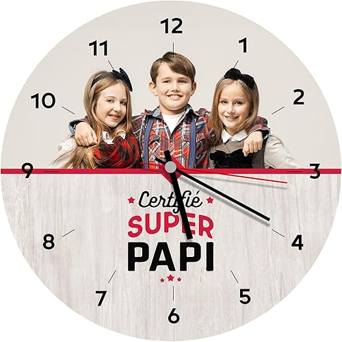 Ballonssimo Horloge Ronde Personnalisée en Bois 23cm - Impression Photo et Texte Haute Qualité - Décoration Murale Unique - Idée Cadeau Originale (pour Papa)