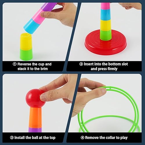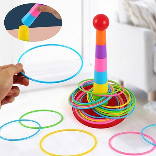 Falafoty Jeu de Lancer d'anneaux pour Enfants avec 18 Anneaux, Jeu de Lancer et Activité Coloré, Jeux de Jardin Extérieur Intérieur Équipement de Jeu pour Enfant Adulte Jouet de Jeu de Lancer Anneaux