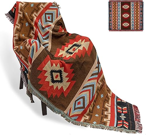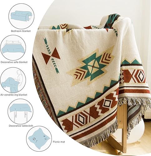 CLOXKS Plaid bohème Chic,Navajo Azteque jeté de canapé Ethnique,Tricotées Couverture à Franges,Double Face Patchwork,pour intérieur,extérieur,Camping (Tailles Multiples)