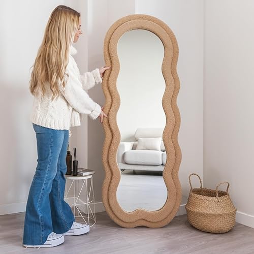 Flamingueo Miroir Mural - Miroir sur Pied, Miroir Asymétrique, Grand Miroir, Miroir Chambre, Miroir Vague, Miroir Mural Asymétrique, Miroir Irregulier