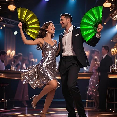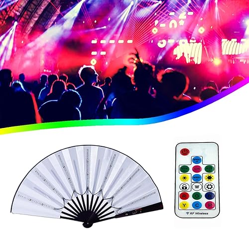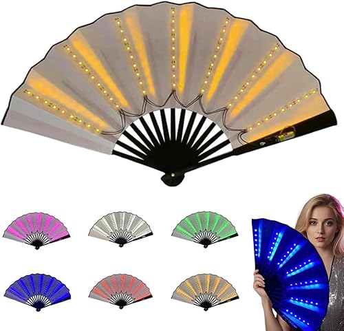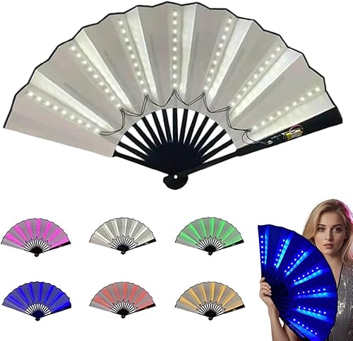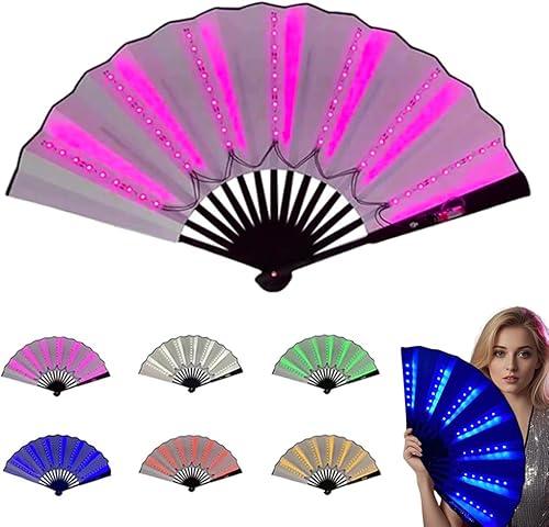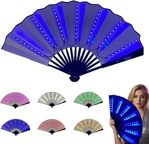Éventail à main LED de fête, ventilateur pliable multifonction à main, grand éventail pour danse en ligne, performance sur scène, anniversaire, mariage, décoration d'intérieur (bleu)