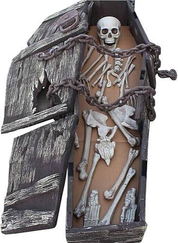 FHUILI 1,6 M Halloween Skull Coffin - Simulation en Mousse chaîne Big Cercueil Crâne Tomb os Props - pour Haunted House Décor Bar KTV Party Room Escape Agence décorative