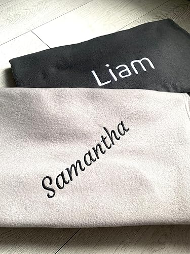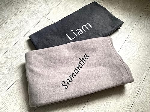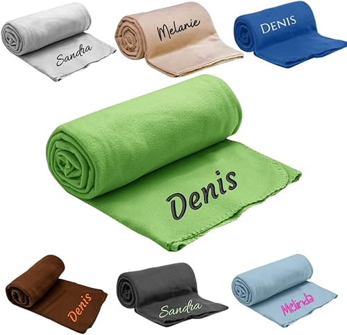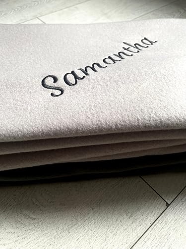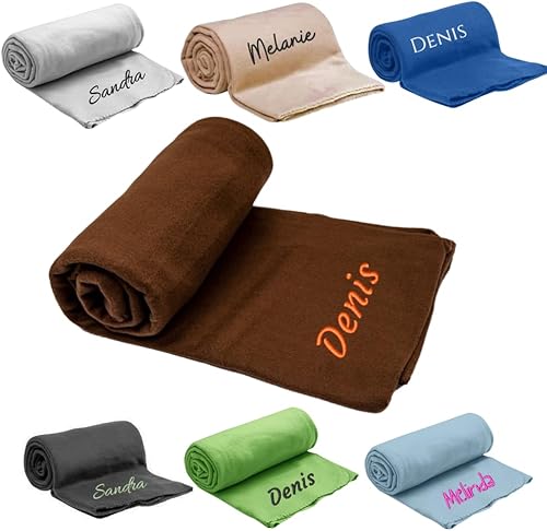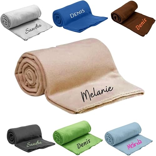 Pet-Jos Couverture personnalisée brodée avec nom ou Texte souhaité, 200 cm x 160 cm, Couverture de canapé Douce et Douillette, Polaire de Haute qualité, Cadeau personnalisé (Beige)