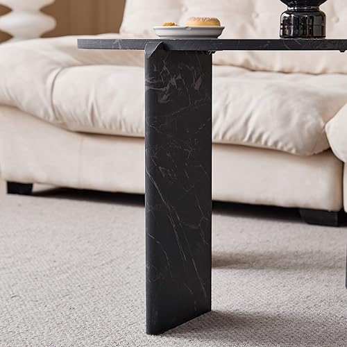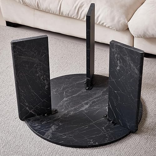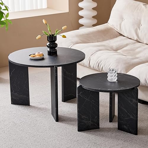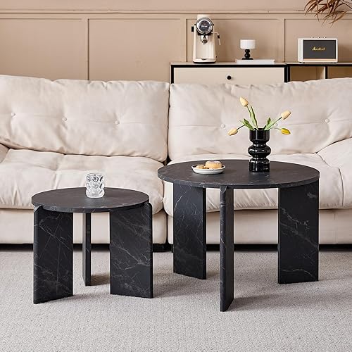JZGORC Lot de 2 Table Basse, Table Basse Effet Marbre Noir Imitation, Design à Trois Pieds, Tables D'appoint de Salon de Style Simple et Moderne, Adaptée au Salon et à La Chambre à Coucher