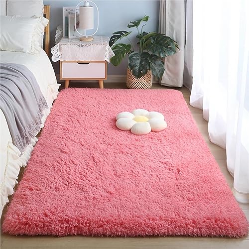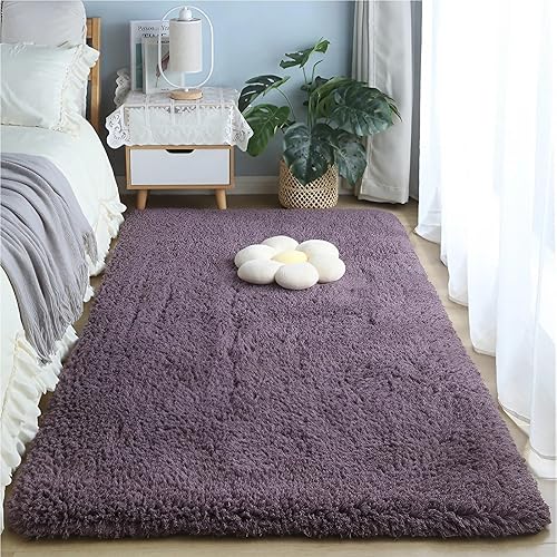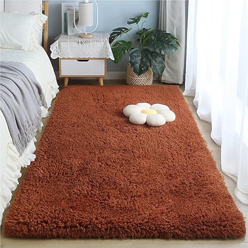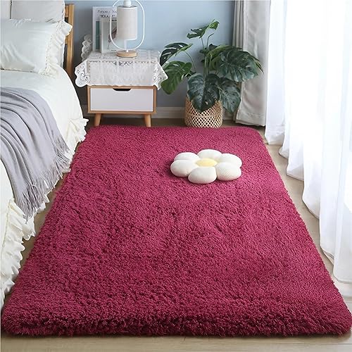 ZJEQZH Tapis Shaggy Poil Long, Doux et Confortable Décoration Moderne, Descente De Lit Antidérapante Lavable pour Salon et Chambre Adulte(Wine Red,60x120 cm)