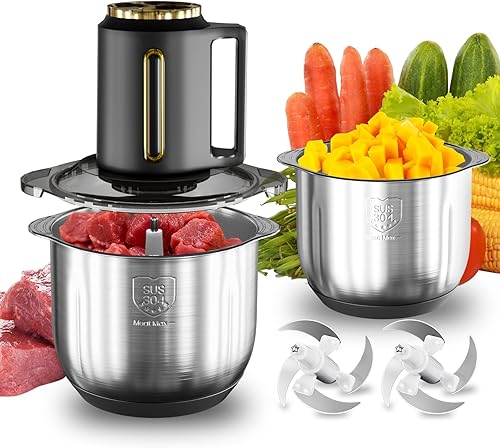 Hachoir Électrique 2,5L, Multifonction Mixeur Hachoir avec 4 Lames Amovibles, 3 Vitesses, Acier inoxydable 304, Moteur 300 W, Facile à Nettoyer, pour Viande, Légumes, Oignon et Fruits