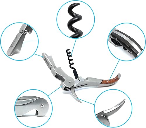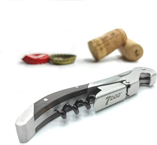 7doo Tire-bouchon professionnel Sommelier en bois d'acier, décapsuleur de vin professionnel, ouvre-bouteille pour bouchons à couronne, tirabuscion Sommelier, cadeaux de Noël originaux (ELITE - BLACK)