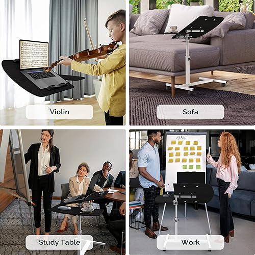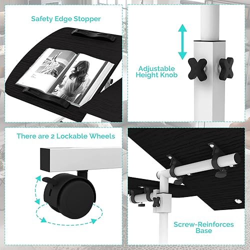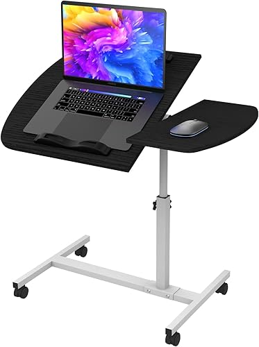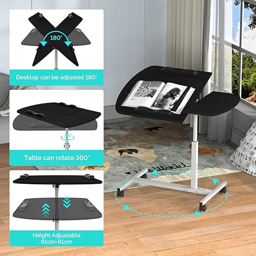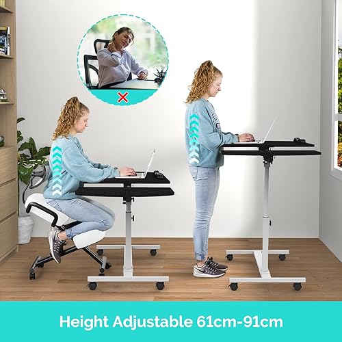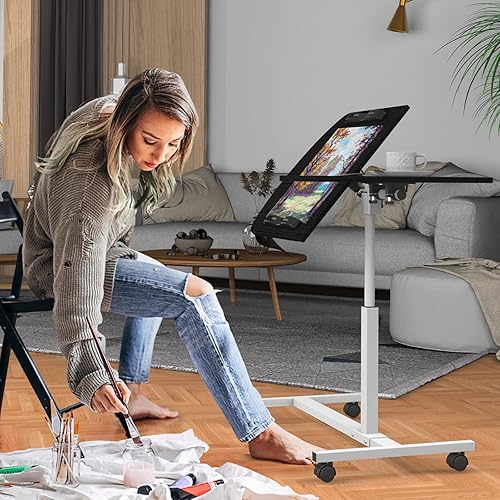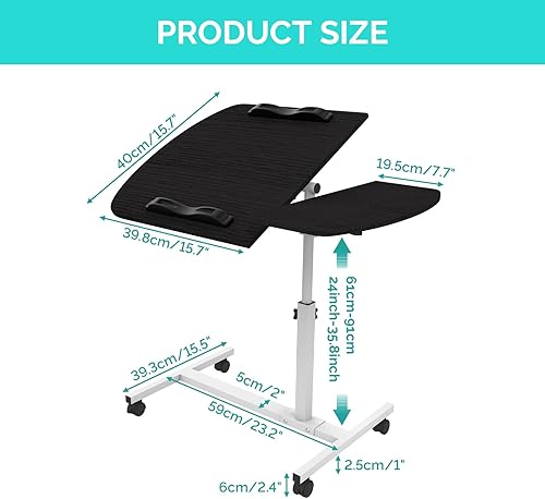 PIPIPOXER Table Roulante pour Lit Canapé, 60x40cm Table de Lit pour Ordinateur Portable, Hauteur Réglable 61-91cm, Table d'Appoint avec Bandes Antidérapantes, 4 Roulette Verrouillable, Bois