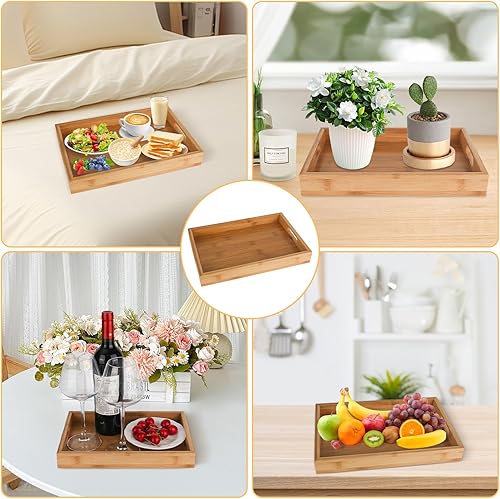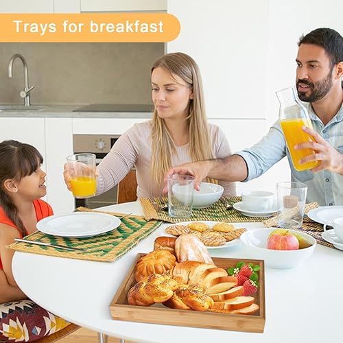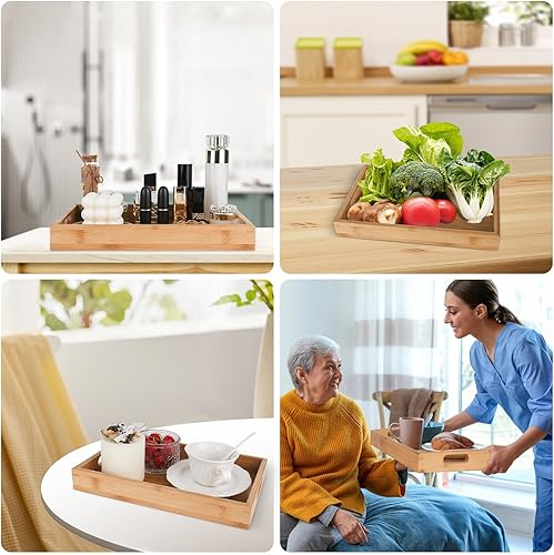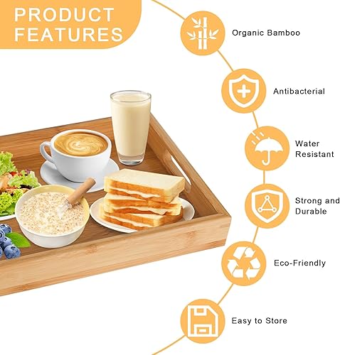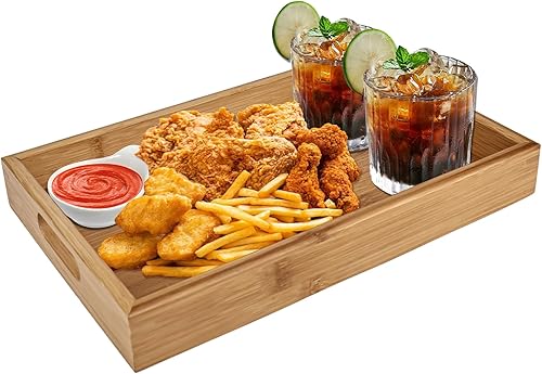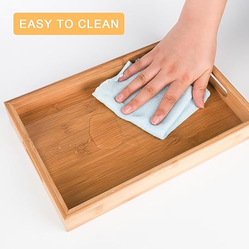 YYTECH Plateau de Service en Bambou avec Poignées,Plateau Bois Plateau de Service Plateau de Petit-déjeuner,Plateau en Bambou pour Petit-déjeuner, thé, Table Basse, Cuisine décoration(30x20x4 cm)