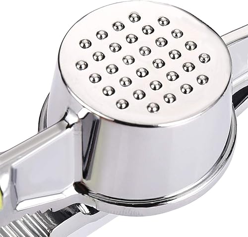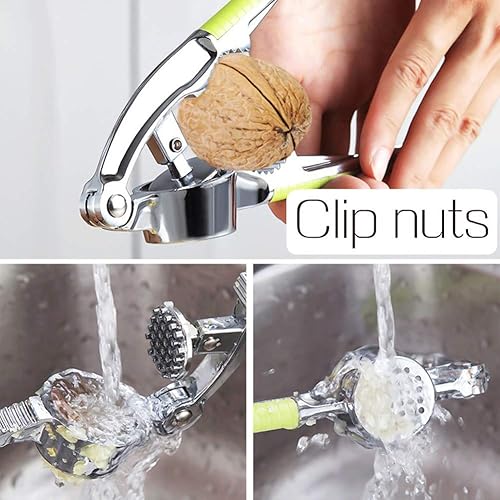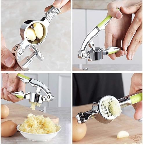 CARLIC PRESS - Presse professionnelle à l'ail en acier inoxydable avec poignée confortable, design léger et ergonomique, facile à utiliser et à nettoyer 16cm(Gris argenté + poignée verte)