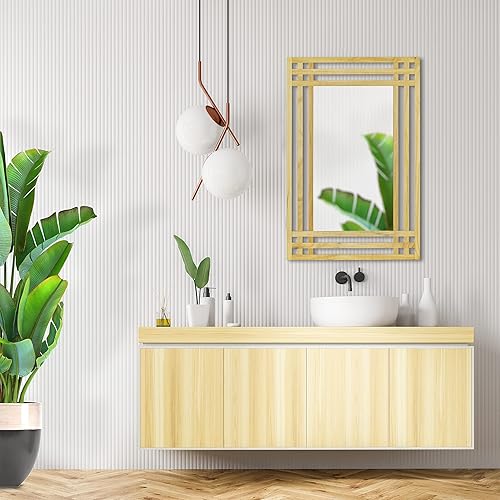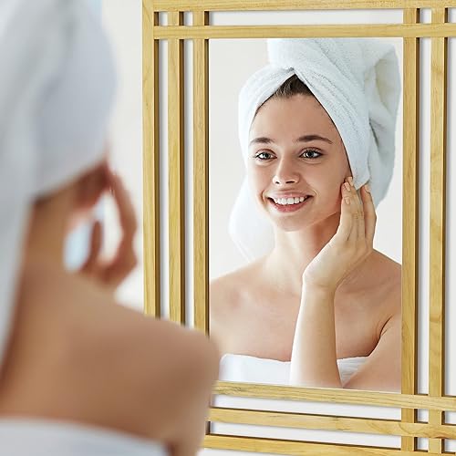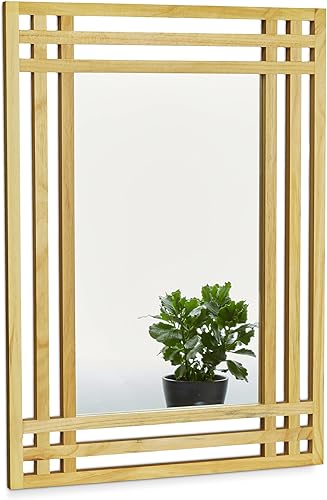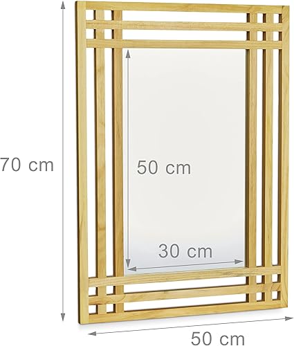 Relaxdays 10020483 Miroir en bois de pin fixation murale salle de bain couloir salon à suspendre avec cadre en bois H x l x P: 70 x 50 x 2 cm, nature