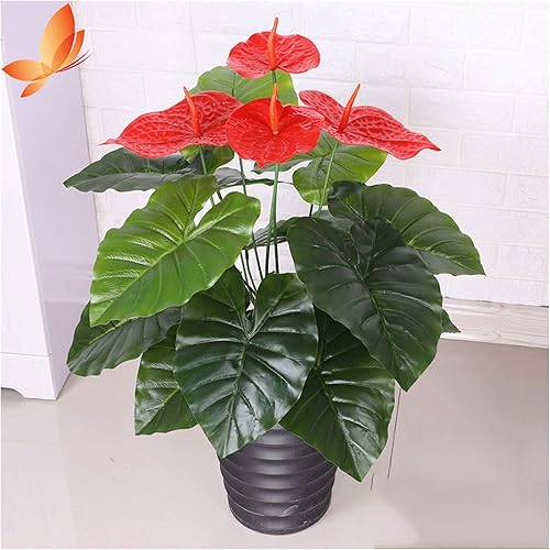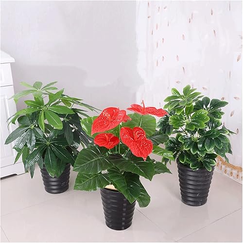 Arbre artificiel en forme de bonsaï Plante d'anthurium artificielle de bon augure, fausses plantes en pot de 29,5 pouces avec 18 feuilles, fausses plantes parfaites en pot for l'intérieur et l'extérie