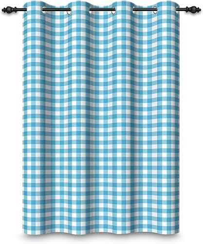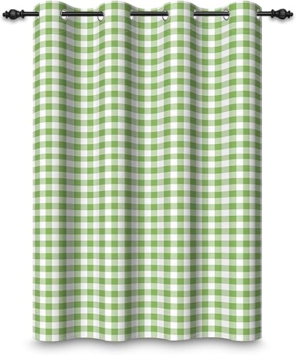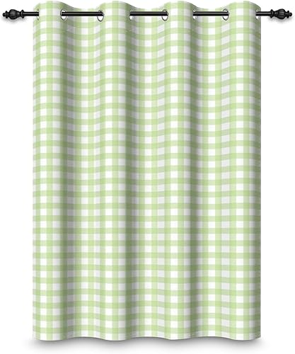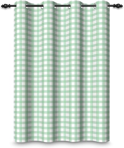 ggaimwf 135x245cm Plaid Rideau à œillets Chiffon Buffalo Vert Menthe et Blanc Vichy Carreaux à Carreaux Motif Fermette Rideaux occultants à œillets pour Chambre à Coucher et Salon,1 Panneau Simple