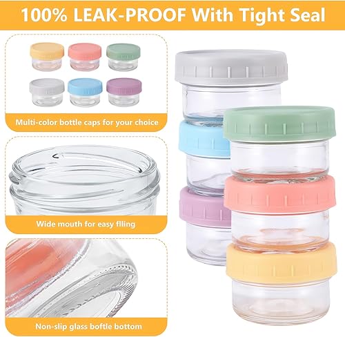 SUNJULY Lot de 6 boîtes de conservation en verre avec couvercle, 80 ml, hermétiques, sans BPA, mini boîtes pour vinaigrette, vinaigrette, congélateur