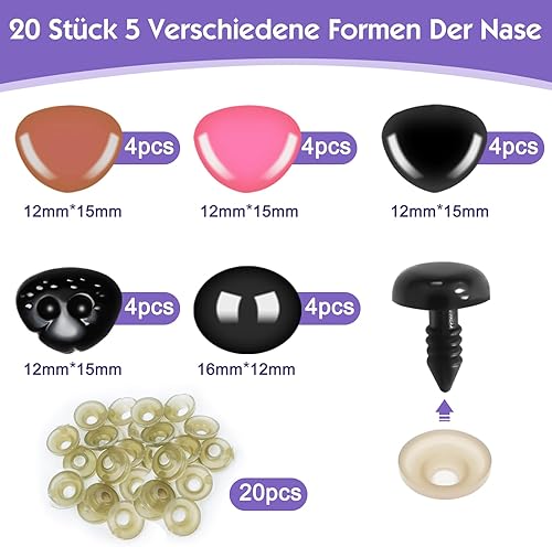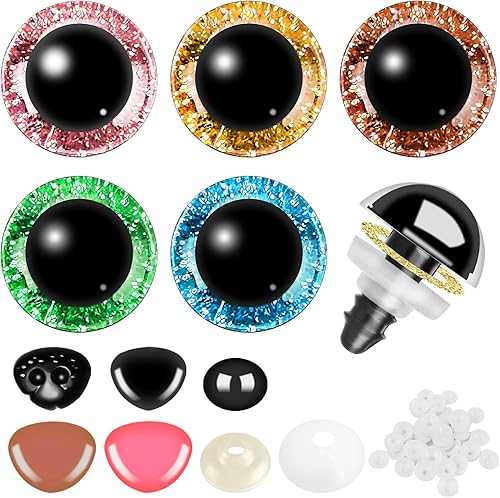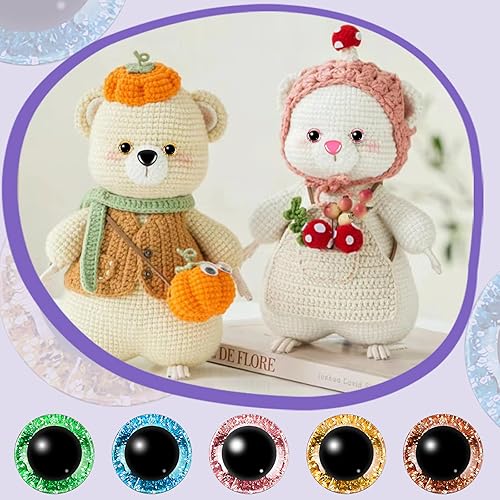 Sheryl&Rain 40 Pcs Yeux de Securite Amigurumi, 5 Colorés Yeux Amigurumi Kit 16mm, Yeux de Poupée en Plastique avec Rondelles, Yeux Crochet pour Poupées en Peluche, Poupées au Crochet, Artisanat